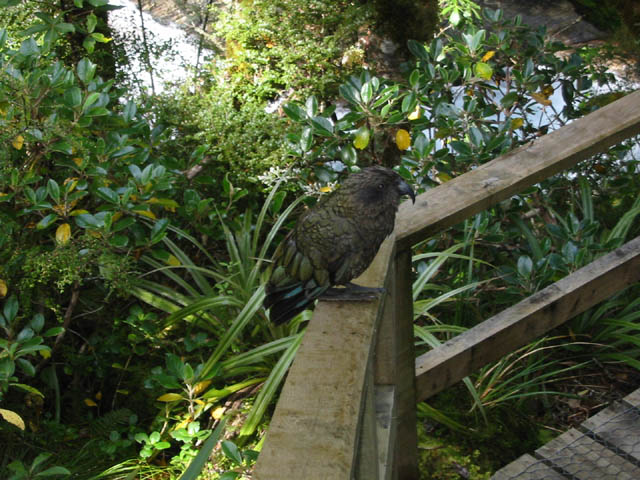 So I’m walking down the path by myself and a Kea lands on a railing right in front of me.