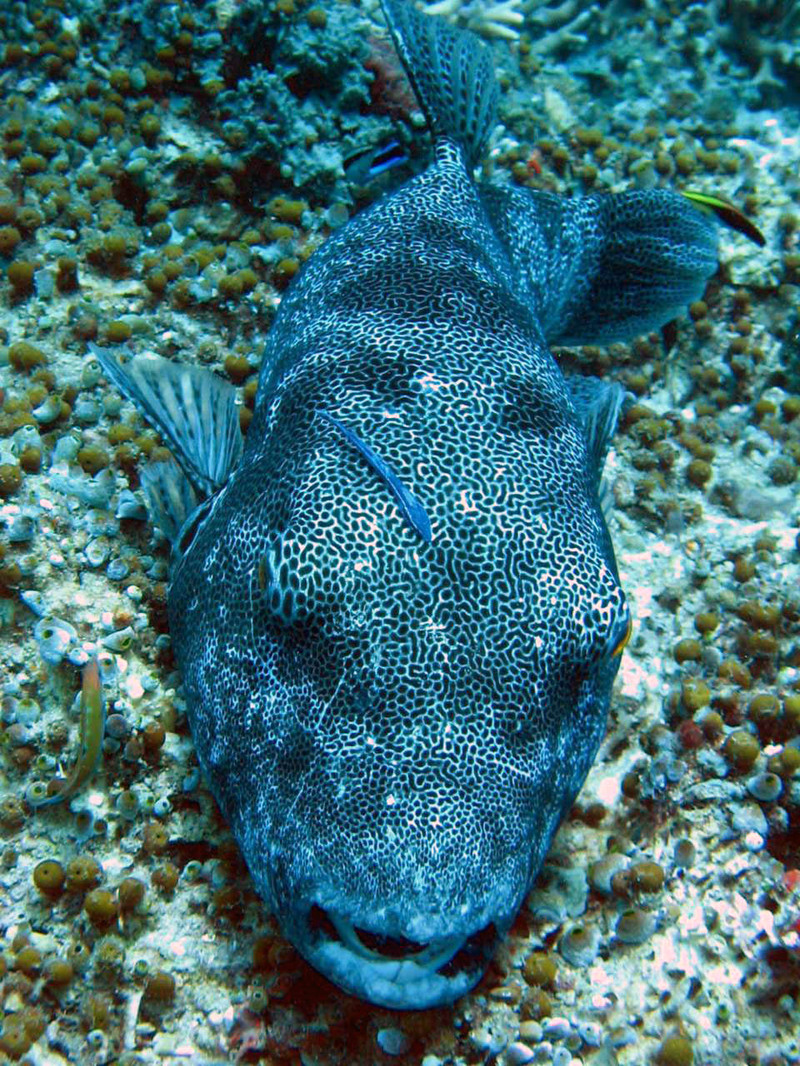 Two days before I arrived, a diver died. He was a young Russian guy staying on nearby Mabul island, which has nicer accommodations but does most of its dives off Sipadan. The guy was reckless and went down to 75 meters on a two-tank dive. That’s 244 feet. Oxygen toxicity sets in at around 60 meters, which means (I think) that the volume of oxygen you’re taking in with each breath is so dense that your body can’t handle it. He panicked and rushed to the surface, causing the air embolism (brain bubble) that killed him. They found him face-down in the water. Elias said his neck had expanded from all the bubbles. Pretty gross.