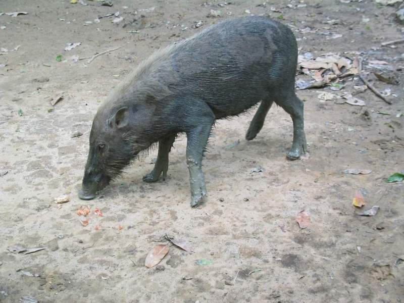 A large group of bearded pigs comes storming through the camp a couple times each day to roll around in the mud and inhale our food scraps. They’re ugly and wretched, but they really seem to enjoy being alive more than most animals.