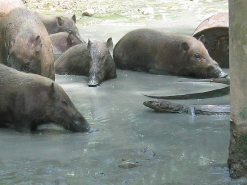 There are a lot of monitor lizards, which I’m getting fairly used to as they’re everywhere. Here’s one engaged in a dispute with the pigs over a shared puddle.