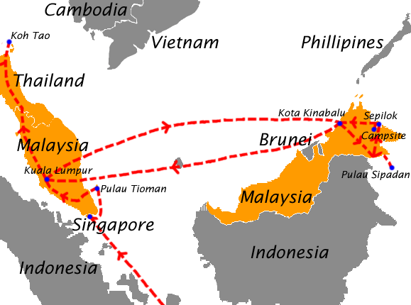 And speaking of finishing, that just about wraps it up for me. This was another excruciatingly long one. I apologize. I hope you did a lot of skimming. For anyone interested, here’s a map of my course through Singapore and Malaysia.