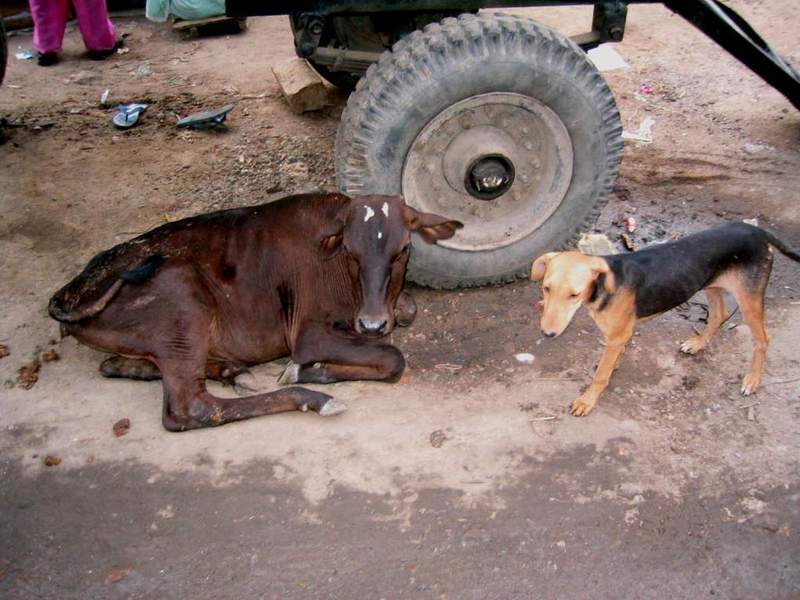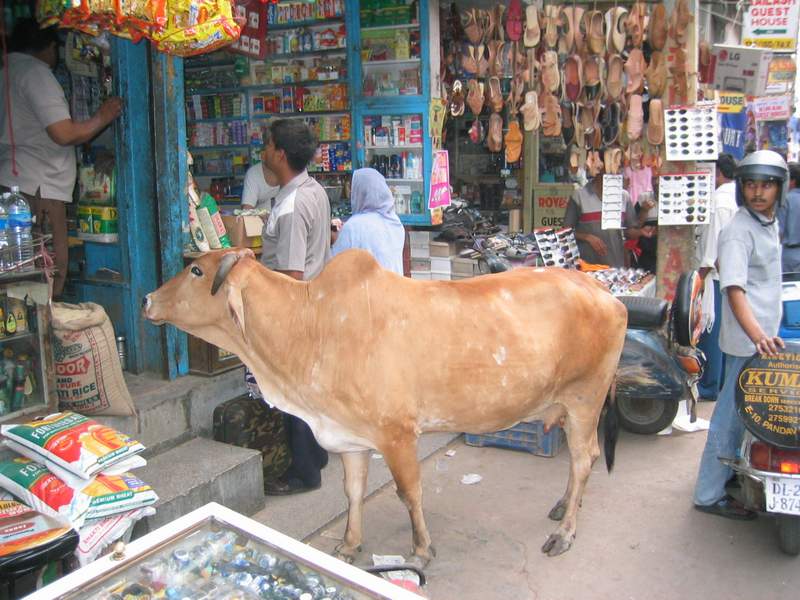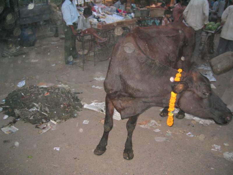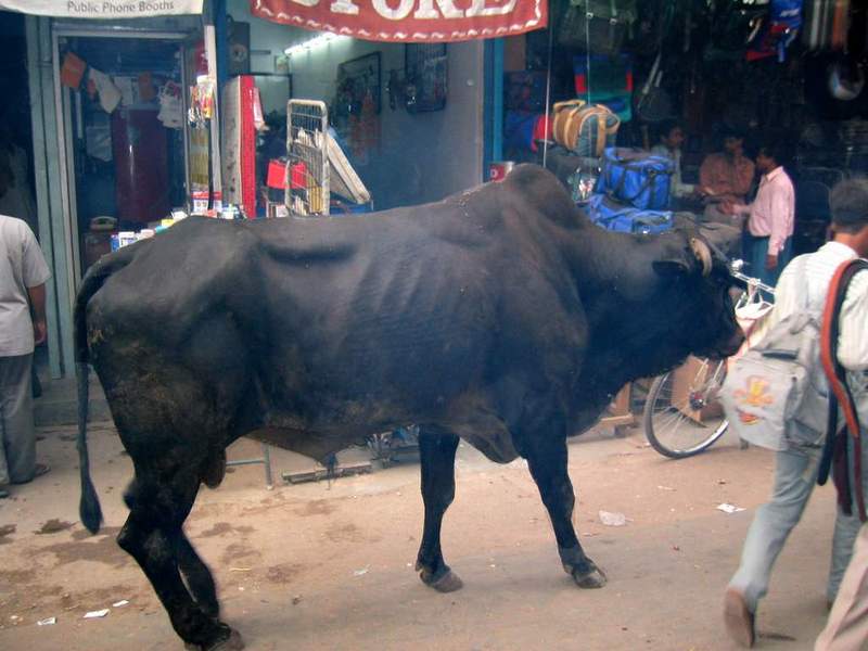 Cows are sacred in the Hindu religion, which means they get to go wherever they want and do whatever they please. They wander into the shops, they graze on the garbage, they shit all over the street, and no one would ever dream of doing anything about it. A lot of the cows are clearly diseased, shaking uncontrollably with huge, tumorous growths along their bodies, but God has literally forbidden anyone from taking action.