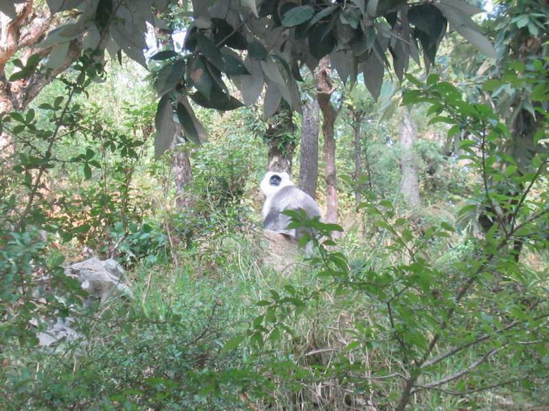 The monkeys are mostly your garden variety, but Tom and I had one experience that pretty much explained away the Yeti myth as far as I’m concerned. We were walking down the path between the central village and the monastery when Tom spotted something in the trees down below. While he’s indifferent to the monkey population, he has an amazing aptitude for spotting them that I do not share. The thing came closer and stood upright to look at us. It had thick white fur that made it look twice its real size, and a highly expressive, pitch-black face. It stood more than waist-high, and could probably have kicked my ass.