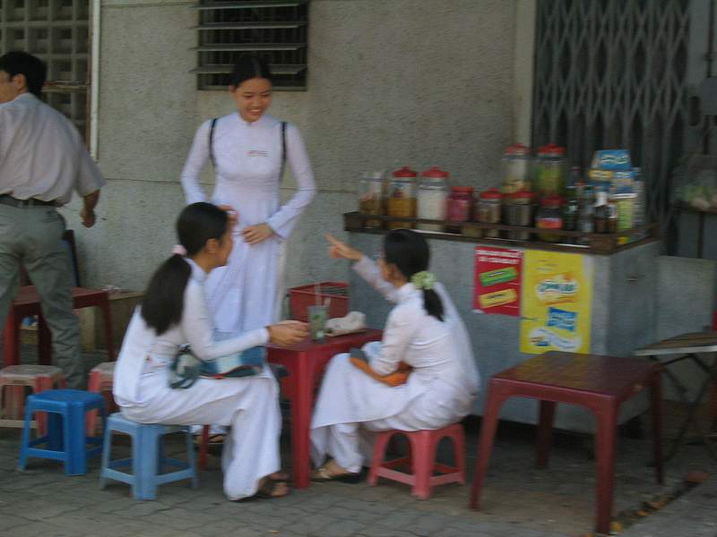 The young women in South Vietnam wear these amazing dresses that are as white as white can get. I don’t know what they signify, or if they’re just the style. It might be a student uniform, I don’t know.