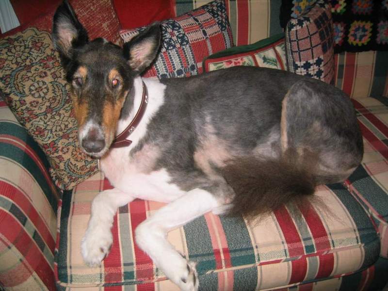 We think she actually kind of digs it. She doesn’t look much like a collie anymore, but she’s less sticky and knotty and she has a much easier time getting at her fleas.