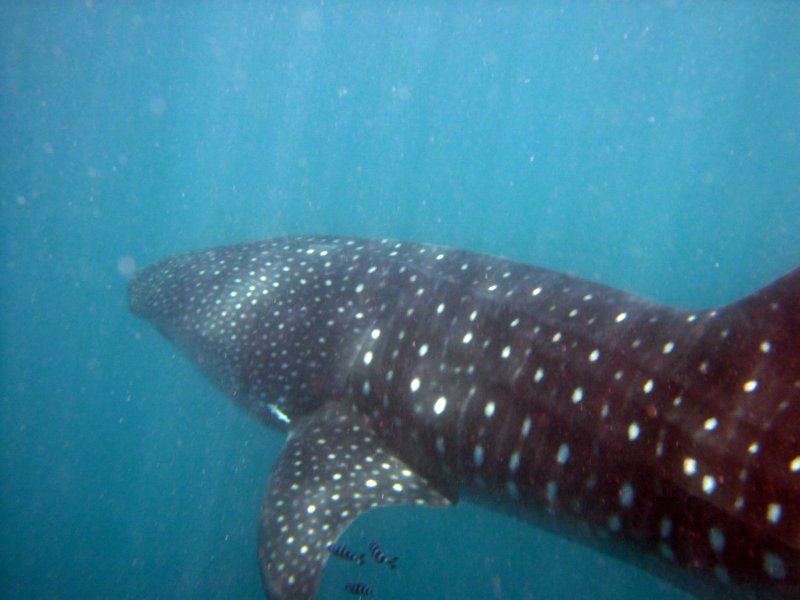 On the last day of the cruise, we got lucky and dove with two whale sharks and had a brief encounter with a manta ray, which is very uncommon in these waters.