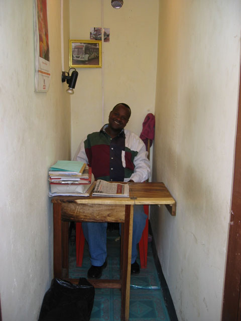 I left Moshi this afternoon and took an hour bus ride to Arusha. Here’s the plush office of the man who sold me the ticket: