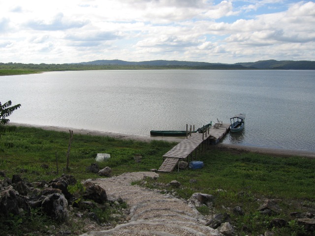 Yaxha shown in the distance. El Sombrero sits on the lake’s east bank. The land to the south of the lake, visible in this picture, belongs to Juan.