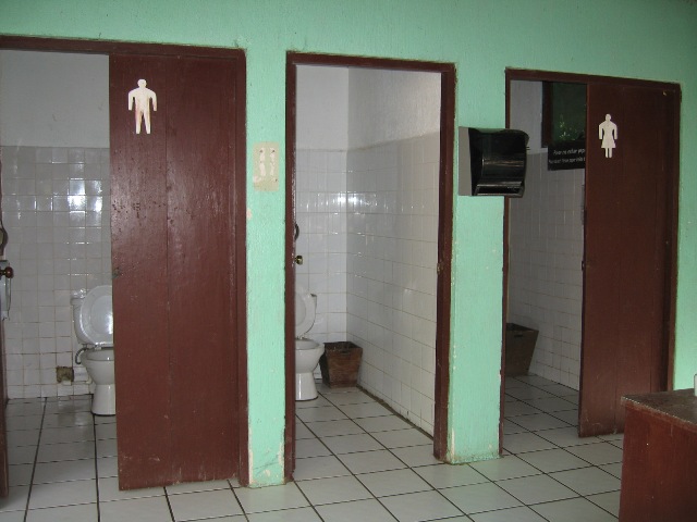 The public bathroom at Tikal is very progressive. It has stalls for both men and broad-shouldered transvestites.