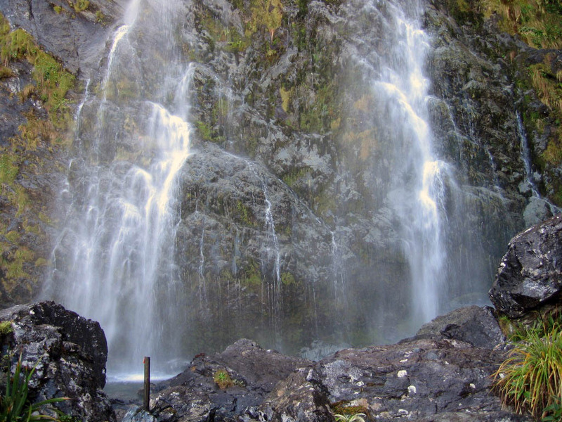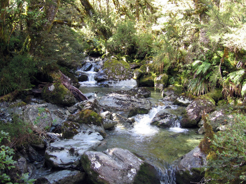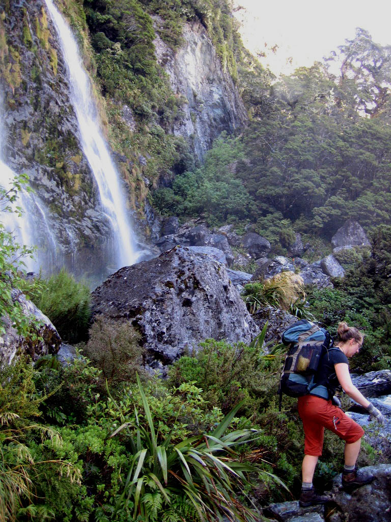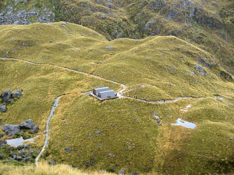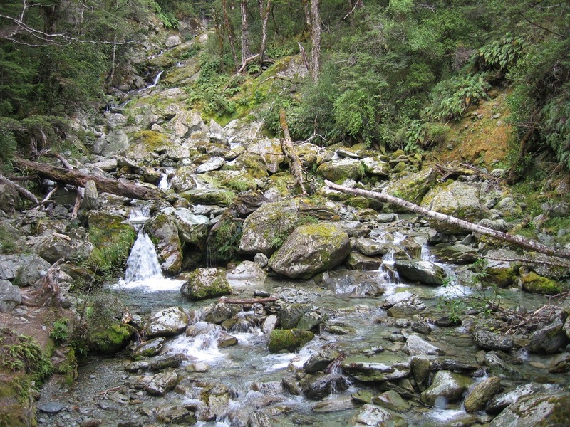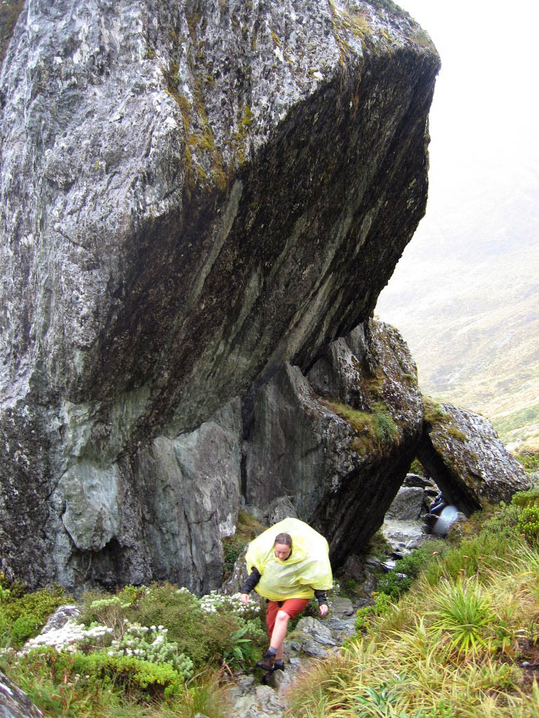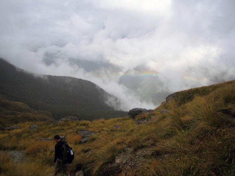 Day two is the big uphill/downhill day. The Routeburn trail forms a saddle between two high peaks, then drops back down into forest. It rained.