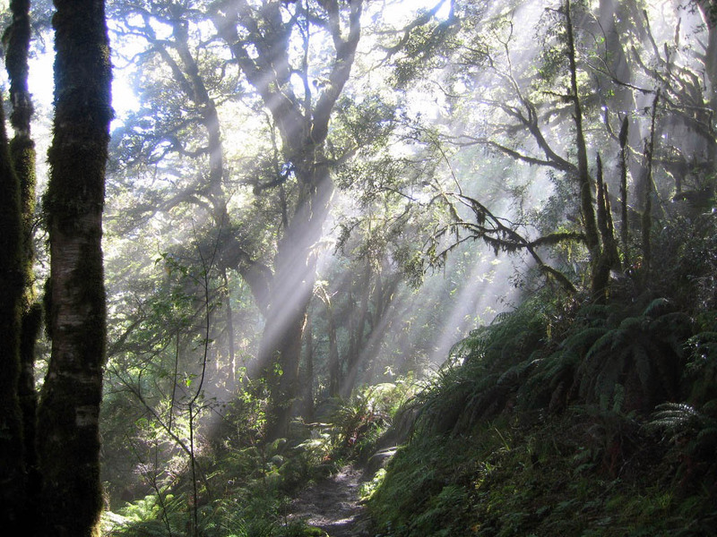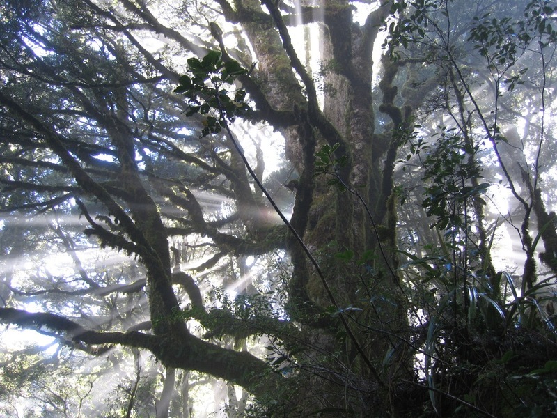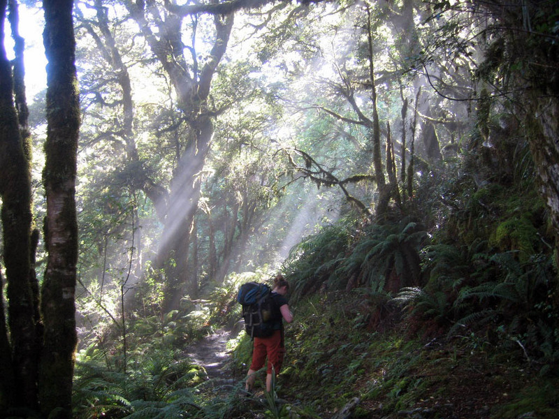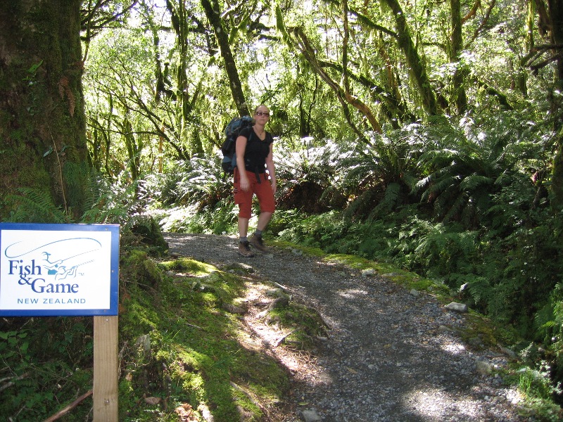 The aforementioned bus ride took us through the town of Glenorchy and past the location of Isengard from the hairy midget movies. Just past Isengard, near the start of the trail, are the Elven woods of Lothlorien.