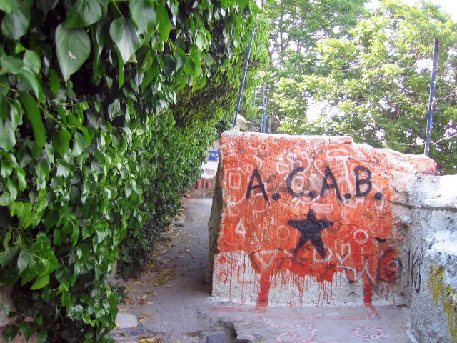 They take me to the front entrance and explain to the head guard, in Greek, what I was doing. The head guard pulls me down a path, around a corner, and behind a building, so no tourists can see.