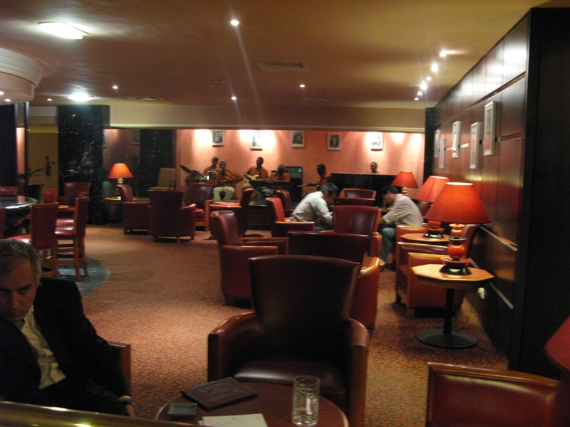 I’m writing from the Hotel Sofitel. It’s the nicest hotel in Mali. There is a pool and a golf course and tennis courts. Giant tortoises roam freely on the lawn. The lobby is filled with Europeans talking to each other and tickling their laptops, as I am doing right now. In the bar, local musicians are performing a version of “House of the Rising Sun” that is far too good for its audience.
