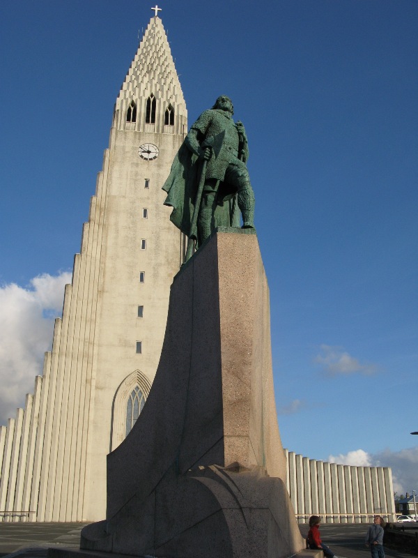 It doesn’t so much set, ya see, as much as it dips across the horizon for a few hours in the middle of the night. Here’s the big Leif Ericson statue in the center of Reykjavic…