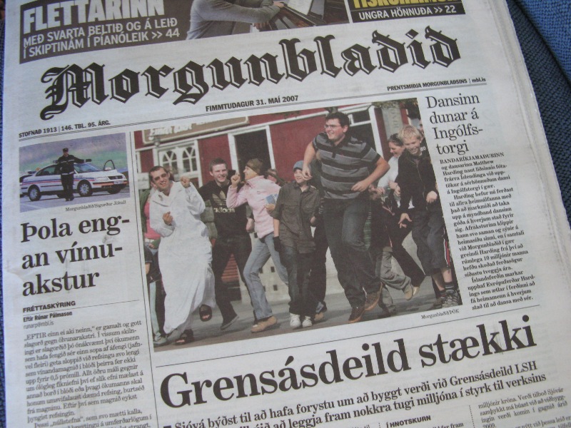 The flight attendant passed out copies of the national paper and there I was, dancing badly on the front page.