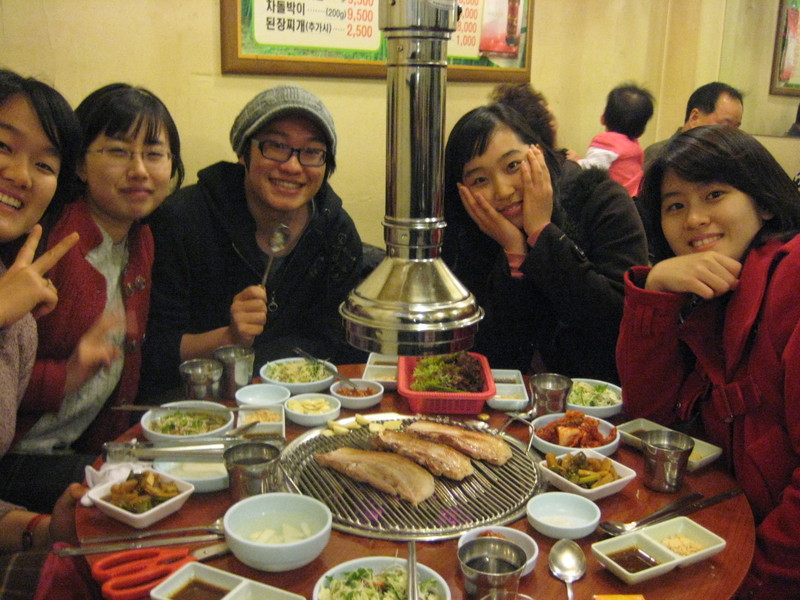 So anyway, the bulk of the crowd was an English class that had been corralled by their American teacher, Joshua. They invited me out to a Korean barbecue restaurant.