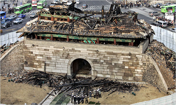 And then, 12 days later, the 600 year old structure of Namdaemun was burned down by an arsonist.