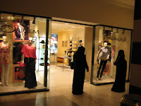 Burke-concealed ladies eyeing haute couture. This is an irresistible photo op in the Middle East, and, of course, a big fat cliche.
