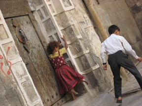 Kids in Yemen spend a lot of time peering out of windows. I suppose I would’ve too if I hadn’t had a TV growing up. They would yell to me from way up high and I’d have to spend a minute or two tracking the echoes to pinpoint their location.