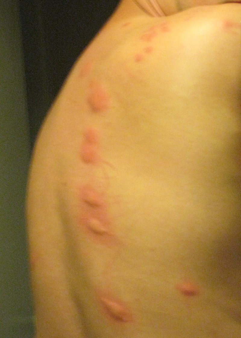 Anyway, I started itching while I was reading. It kept getting worse. Finally I took my shirt off and had a look in the mirror.