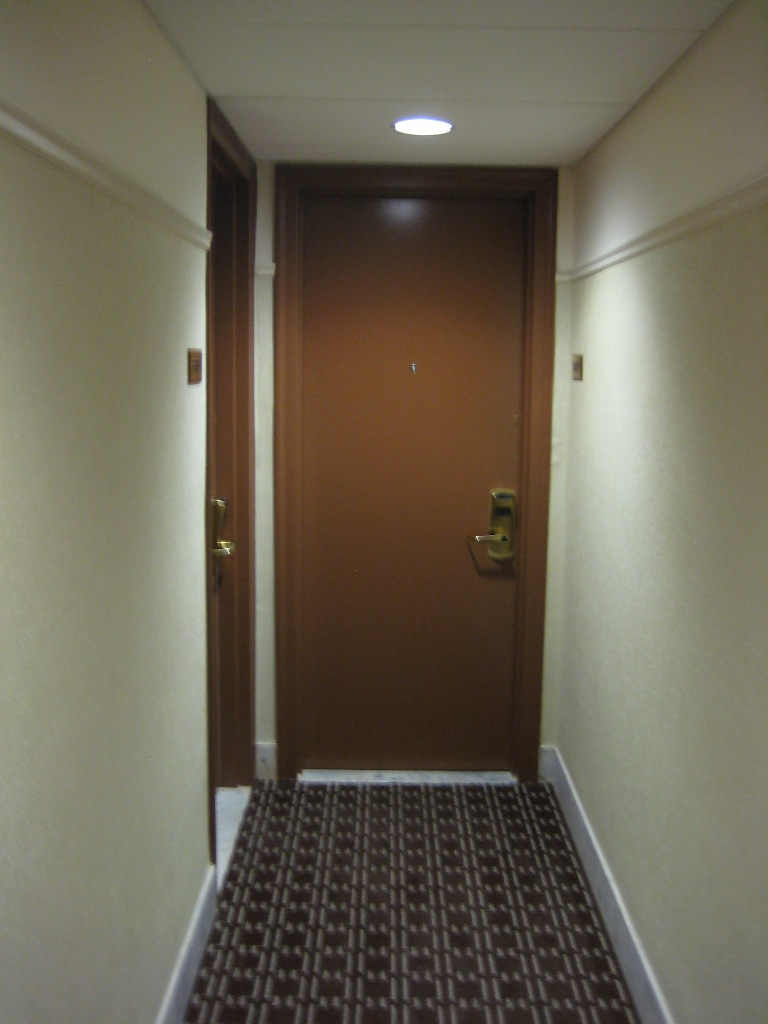 There’s a default Kubrickian creepiness to any long hallway with a door at the end. The spooky factor increases dramatically when you hear whispers coming from the other side. I squealed and scurried back to the elevator like a frightened little girl.