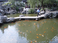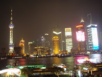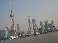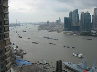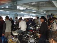 Pudong is the little peninsula with all the skyscrapers on it. We took a ferry across for about $0.17. It was a mad rush of scooters amongst the constant stream of barges along the Huang Pu river.