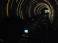 To get back we took the "tourist tunnel," which is a tram that runs underneath the river. It costs 50 times more, but it includes a light show and inflatable creatures that bang against the carriage, so that’s some added value.