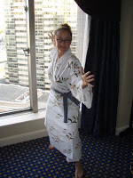Morning flight to Tokyo and here we are. They gave us robes in our hotel room. Guess what happened there.