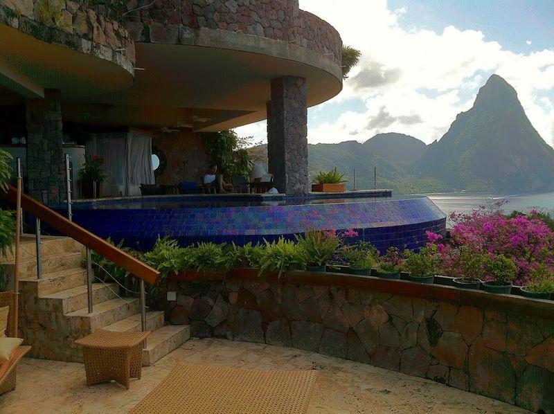 January 12, 2012 Soufriere, St. Lucia I never know what to expect when I check into rooms for this Hotels.com shoot. This is what they gave us last night. That's a private infinity pool in the foreground. I have no idea how to behave in this situation.